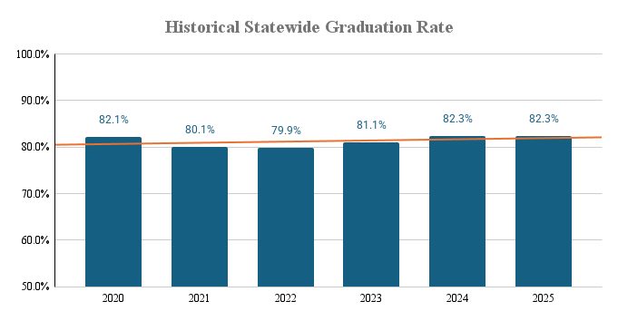 BOISE, ID – Idaho’s 2025 graduation rate stayed the same as the year prior, at 82.3%.